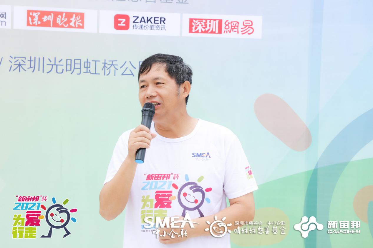 深圳中小企聯(lián)會長、深圳市杰科電子有限公司董事長黃榮添為開幕式致辭。他表示:“感謝新宙邦對本次慈善公益徒步活動做出的貢獻,以及今天參加此次活動的愛心企業(yè)家、愛心人士們的大力支持,我代表深圳中小企聯(lián)感謝大家的參與,今后也希望通過各類活動讓更多愛心人士關(guān)注我們“晴娃娃”,給更多的孩子送去關(guān)愛,能讓他們綻放開心的笑容。”