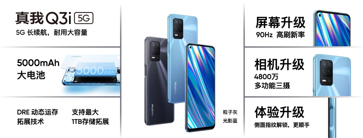 另外,真我Q3系列還發(fā)布了千元入門機(jī)真我Q3i,其搭載雙5G高性能芯片、90Hz暢速全面屏、4800萬多功能三攝,以及5000mAh超大電池和18W疾速快充,配備4+128GB、6+128GB兩種大存儲(chǔ)規(guī)格,售價(jià)分別為1099元、1199元。在首銷期間,兩種版本立減100元,到手價(jià)最低僅需999元,無疑將讓更多用戶能夠以更友好的價(jià)格,享受到5G科技帶來的暢快與便捷。