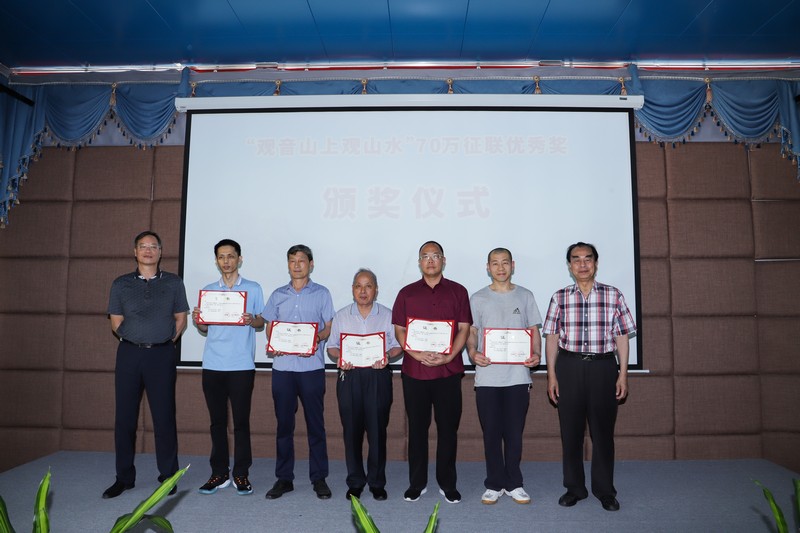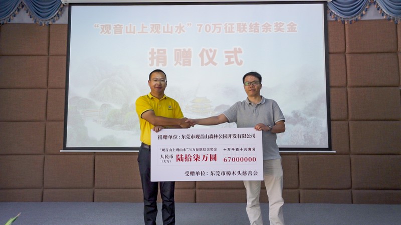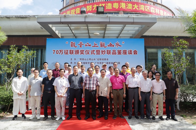 見圳客戶端·深圳新聞網(wǎng)2021年5月18日訊(記者 常軍平)“觀音山上觀山水”70萬征聯(lián)活動終有結(jié)果,評選出15句優(yōu)秀下聯(lián),最佳下聯(lián)空缺,并于5月17日在東莞觀音山舉行了頒獎儀式及妙聯(lián)品鑒座談會?;顒蝇F(xiàn)場,楹聯(lián)家們雅聚一堂,共同見證了本次征聯(lián)活動優(yōu)秀獎的頒出。以楹聯(lián)為媒,進行交流互動?;顒悠陂g,組委會代表東莞觀音山將結(jié)余款項67萬元悉數(shù)捐給東莞樟木頭鎮(zhèn)慈善會。鑒于觀音山在推動楹聯(lián)文化的傳承發(fā)展做出的突出貢獻,被中國楹聯(lián)學(xué)會授予“中國楹聯(lián)文化名山”稱號。