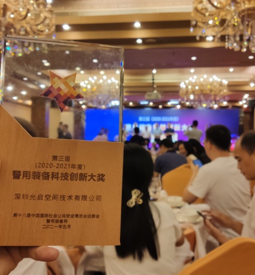 在此次活動上,歷時半年的“第三屆 (2020-2021年度 )警用裝備科技創(chuàng)新大獎”評選結果名單也正式揭曉,光啟憑借警用智能頭盔產(chǎn)品的卓越性能,榮獲第三屆警用裝備科技創(chuàng)新大獎。