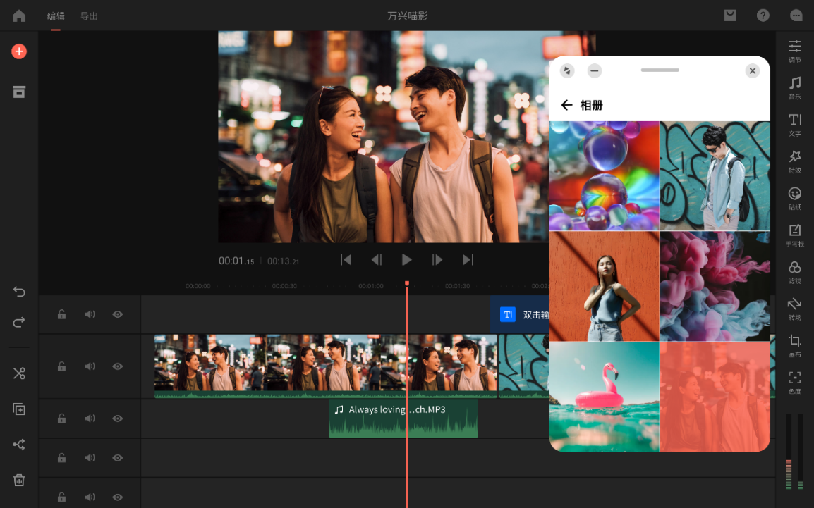 經(jīng)過(guò)迭代的萬(wàn)興喵影HD,在延續(xù)多屏協(xié)同、無(wú)綠幕摳像、多軌編輯和逐幀查看等功能優(yōu)勢(shì)基礎(chǔ)上,進(jìn)一步集成華為HMS技術(shù),針對(duì)華為PAD新增了華為鍵盤、華為云盤、華為手寫筆、語(yǔ)音識(shí)別與朗讀、4K60幀導(dǎo)出等特色功能。其中4K60幀導(dǎo)出功能首次推出,大幅高出市場(chǎng)常規(guī)的1080p;語(yǔ)音合成服務(wù)支持將文字信息轉(zhuǎn)換為語(yǔ)音輸出。此外,該版本還提供獨(dú)立軌道、時(shí)間線縮放等專業(yè)級(jí)視頻編輯功能,資源商城內(nèi)置海量資源素材,可高效助力用戶隨時(shí)隨地創(chuàng)造精彩。
