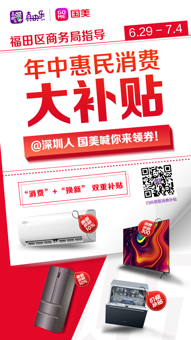 據(jù)悉,為獻禮建黨100周年,在深圳市福田區(qū)商務局的指導下,深圳國美和“真快樂”APP誠意滿滿的推出了“年中惠民消費大補貼”活動,國美這次“年中消費大補貼”將從6月21日起一直延續(xù)到7月4日,4500萬補貼發(fā)放,助力深圳地區(qū)消費者升級品質生活。而且所有活動商品原有低價基礎上進行補貼直降,還有超多驚喜好價等你來搶,此波羊毛絕對放心薅,一起來看看吧!