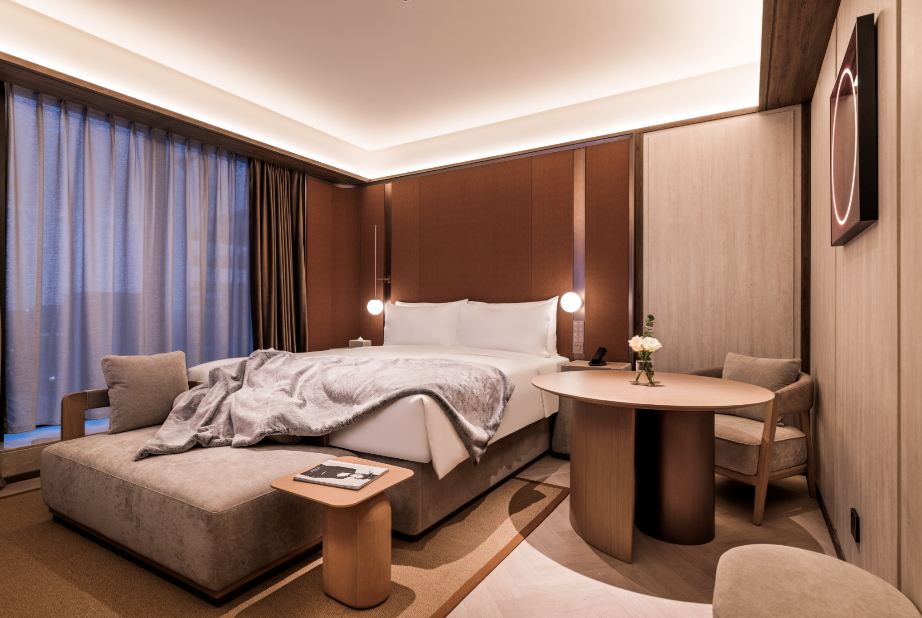在公區(qū)設(shè)計(jì)上,“新水晶”回歸本質(zhì)與純粹,采用胡桃木、古銅、玻璃元素,打造更具質(zhì)感更具高級(jí)感的空間氛圍。大堂配備的威士忌酒廊,優(yōu)雅中又帶著商務(wù),整體提升水晶品質(zhì)特質(zhì)。客房?jī)?nèi)部,油畫(huà)般的質(zhì)感與流暢典雅的線條相結(jié)合,干凈而明亮,純粹的質(zhì)地、靜謐的空間,展現(xiàn)了水晶的格調(diào)和品味。