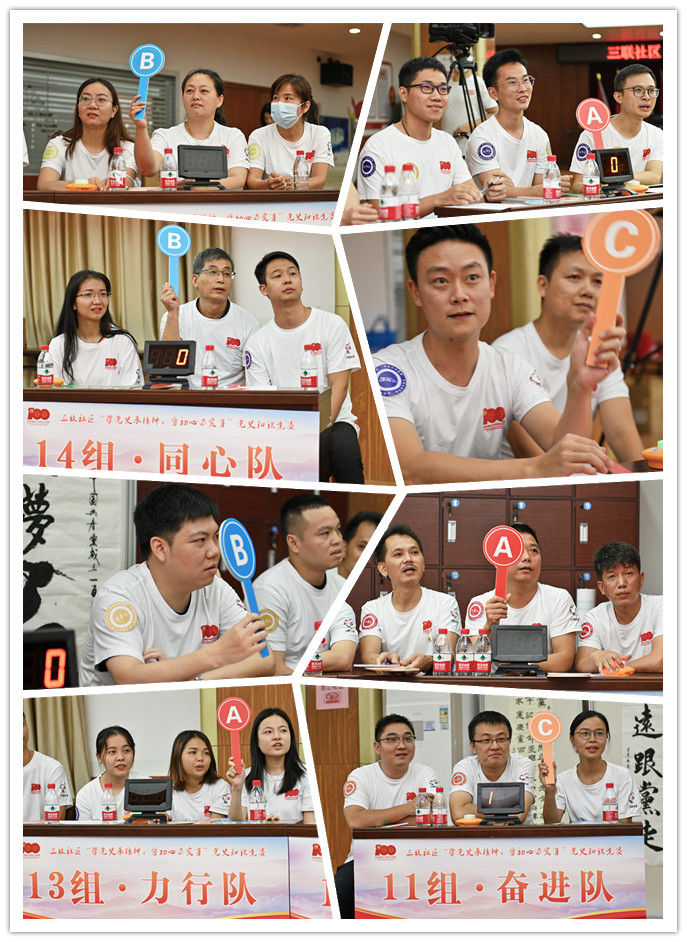 此次比賽分為初賽和決賽兩個階段,初賽為兩兩PK晉級制,來自社區(qū)黨委下屬各黨支部、轄區(qū)各共建單位等組成的14支代表隊分七組進(jìn)行了激烈的角逐,最終7支隊伍脫穎而出,登上決賽擂臺。