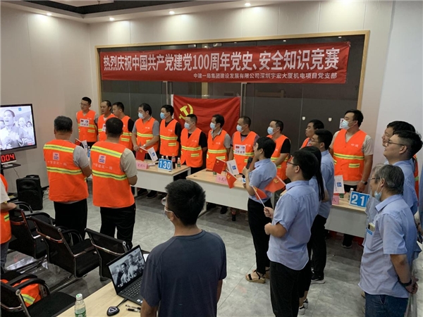 讀特客戶端·深圳新聞網2021年7月30日訊 同心筑夢,百年芳華,為扎實推進黨史學習教育走深走實,創(chuàng)新黨史知識學習方法,濃厚學習氛圍,增強學習興趣,近日,中建一局集團建設發(fā)展有限公司深圳宇宏大廈機電項目黨支部舉辦以慶祝中國共產黨建黨100周年“學黨史、守初心、保安全、促發(fā)展”為主題的黨史、安全知識競賽。此次活動參賽代表隊是由項目廣大工友組成“忠黨隊”、“愛國隊”、“為民隊”、“筑夢隊”,共計50余人參加了本次活動。