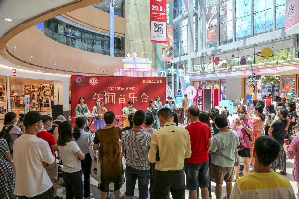 福保街道午間音樂(lè)會(huì)是福田區(qū)福保街道總工會(huì)為轄區(qū)企業(yè)員工量身定制的特色藝術(shù)惠民活動(dòng)?;顒?dòng)利用午休時(shí)間,將音樂(lè)會(huì)準(zhǔn)點(diǎn)送到轄區(qū)商場(chǎng)、企業(yè)大廈、創(chuàng)意園、工廠等,進(jìn)而豐富企業(yè)職工精神文化生活,讓廣大職工感受到來(lái)自政府的關(guān)懷、組織的溫暖,增加員工歸屬感,增強(qiáng)企業(yè)的凝聚力。