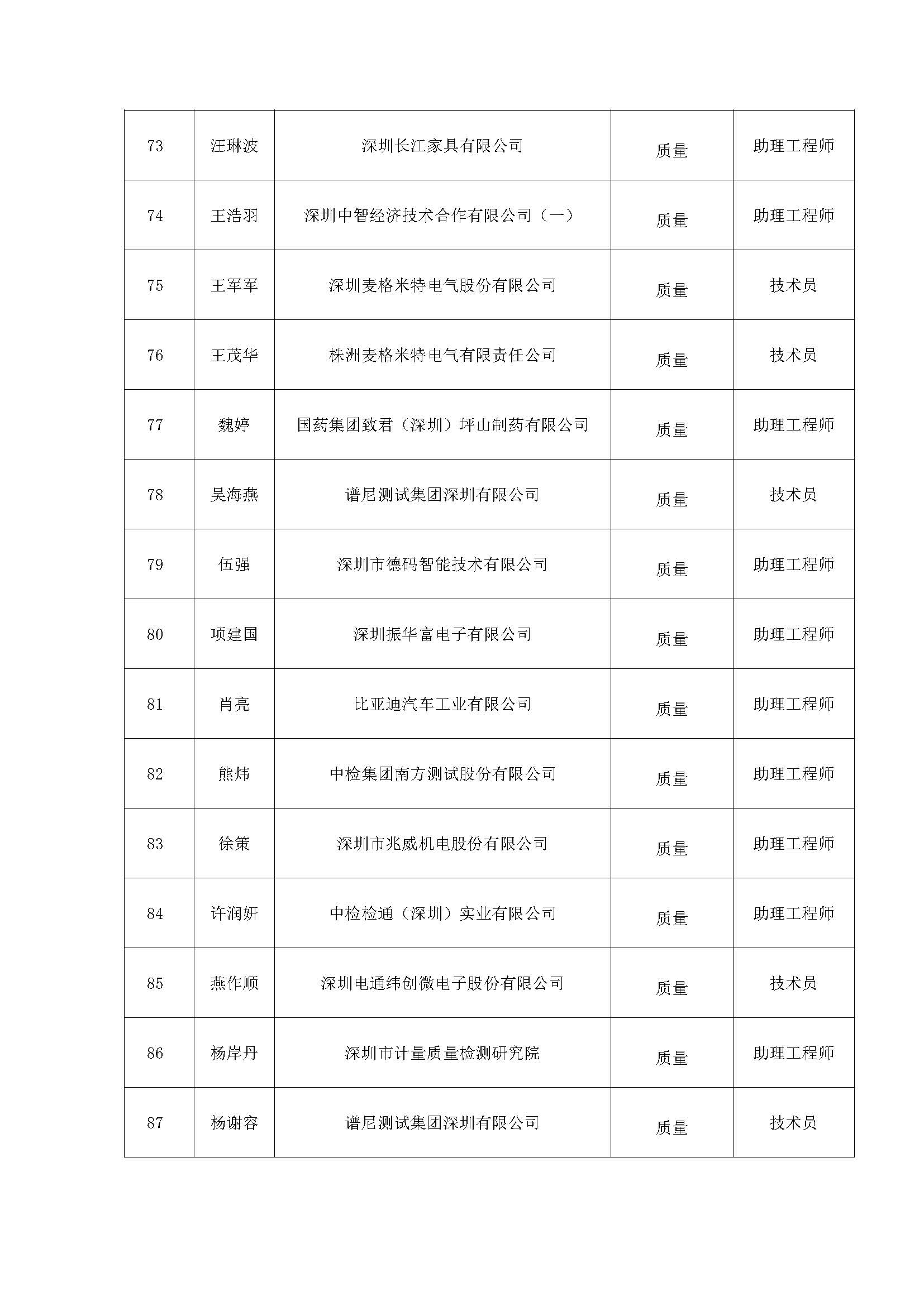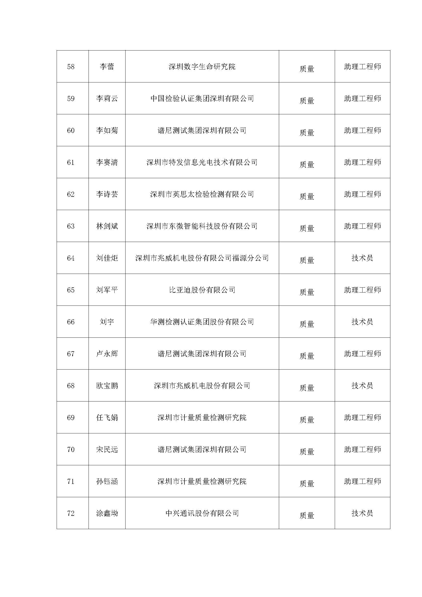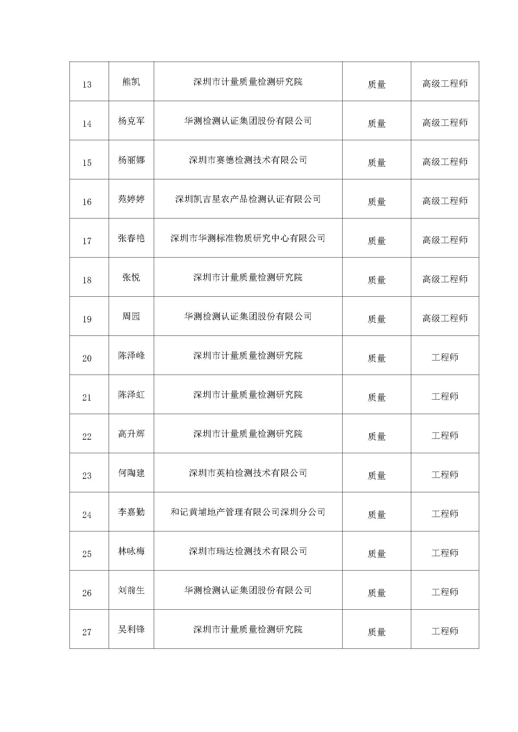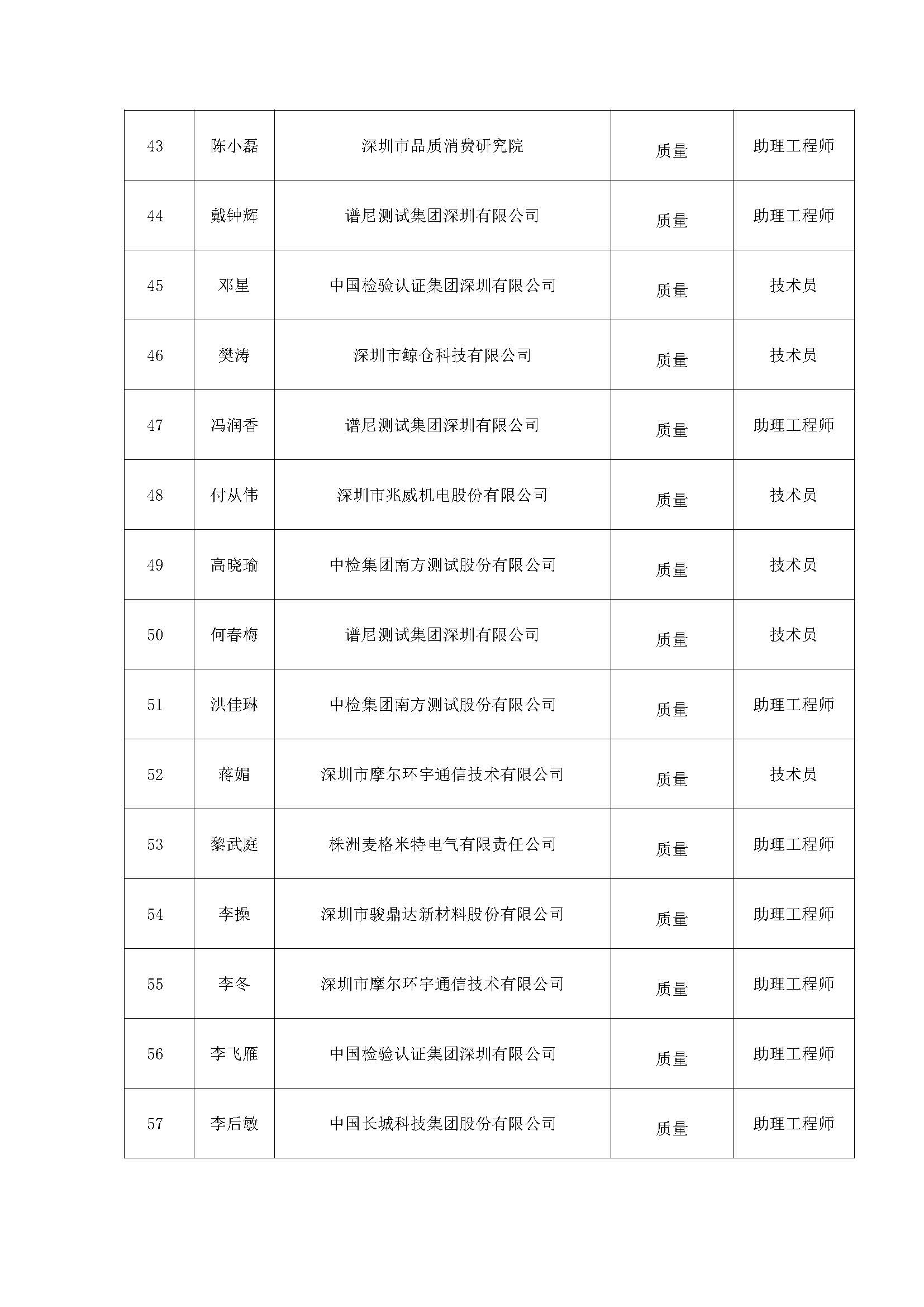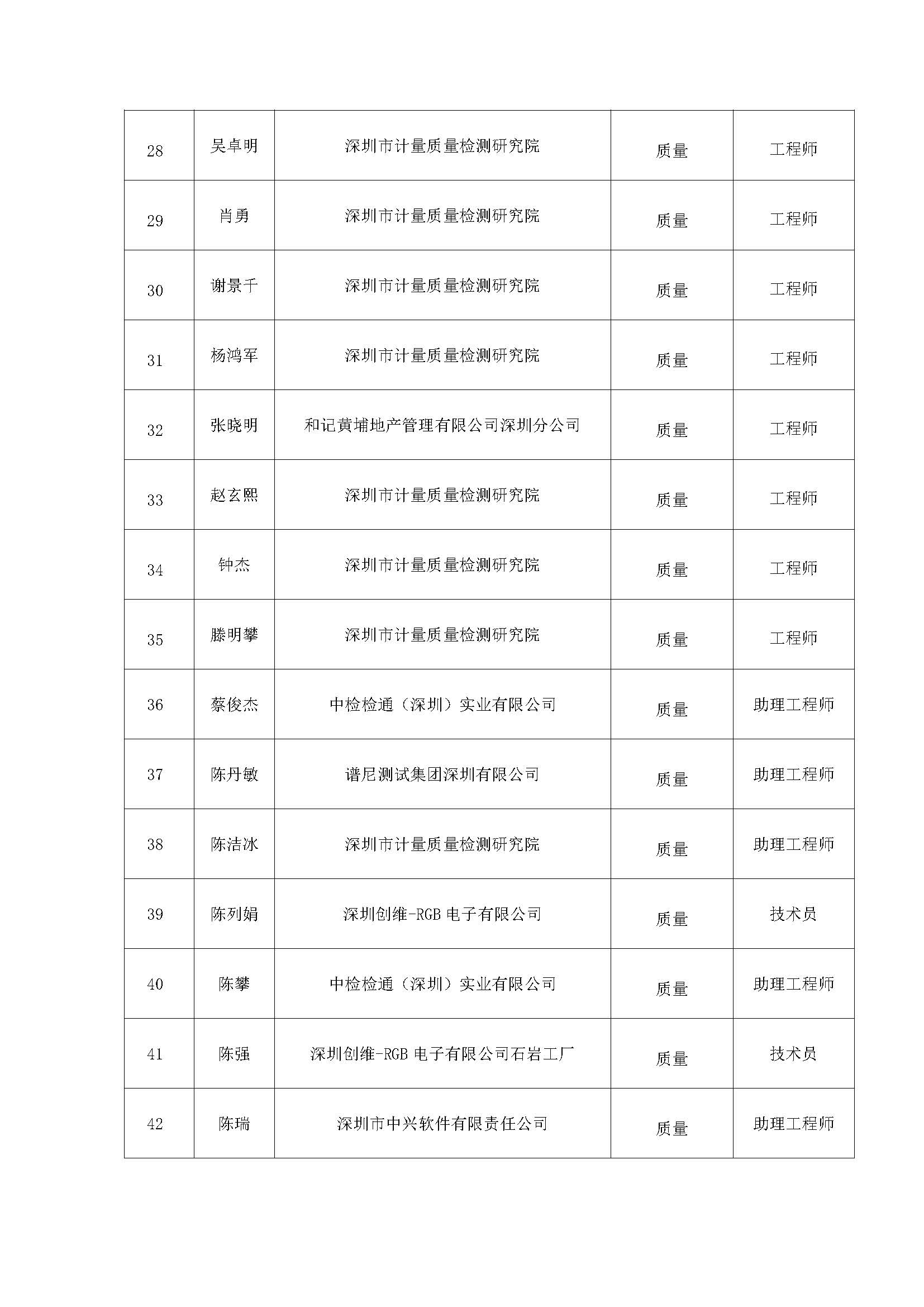 附件:2020年度深圳市質(zhì)量專業(yè)高、中、初級職稱評審通過人員公示名單