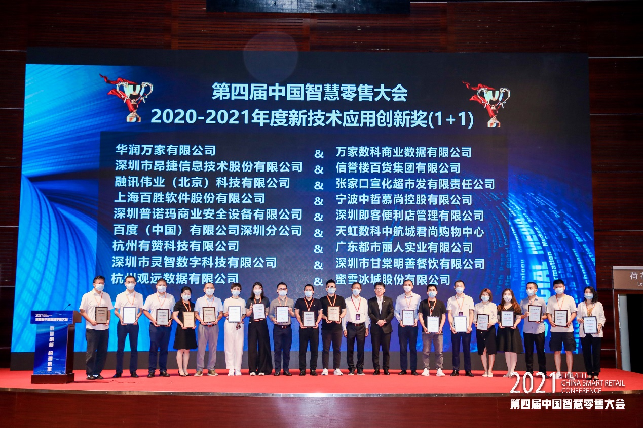 大會(huì)開(kāi)幕式上頒發(fā)“2020-2021年度智慧零售系列大獎(jiǎng)”,大會(huì)組委會(huì)從行業(yè)新技術(shù)應(yīng)用創(chuàng)新;經(jīng)營(yíng)、商業(yè)、組織、管理、服務(wù)等模式創(chuàng)新;全渠道、全產(chǎn)業(yè)鏈、全生產(chǎn)要素賦能等生態(tài)創(chuàng)新;領(lǐng)軍者推動(dòng)智慧零售創(chuàng)新發(fā)展等四個(gè)維度,共頒發(fā):新技術(shù)應(yīng)用創(chuàng)新獎(jiǎng)、模式創(chuàng)新獎(jiǎng)、生態(tài)創(chuàng)新獎(jiǎng)、創(chuàng)新人物獎(jiǎng)四大獎(jiǎng)項(xiàng)。華潤(rùn)萬(wàn)家、靈智數(shù)科、有贊、樂(lè)信等企業(yè)獲此榮譽(yù),天虹股份譚曉華、百果園焦岳等人獲得創(chuàng)新人物獎(jiǎng)。