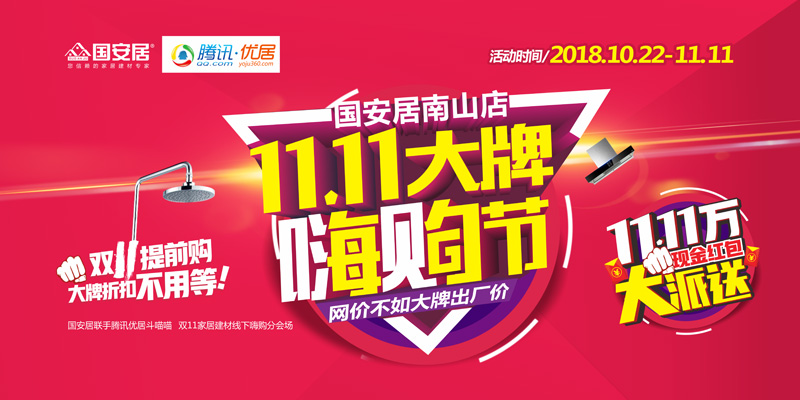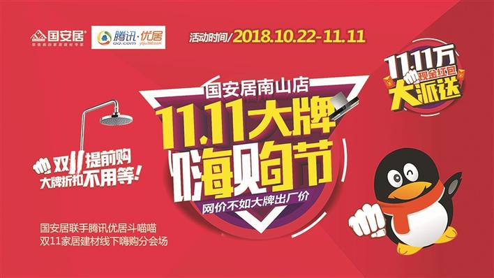 10月22日,“國安居南山店&騰訊優(yōu)居雙11大牌嗨購節(jié)”在國安居南山店四樓火熱啟動!