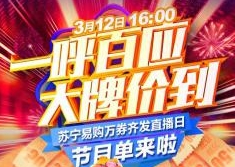 3月12日下午4點(diǎn),蘇寧“315全民煥新節(jié)萬券齊發(fā)直播日”啟動(dòng)。