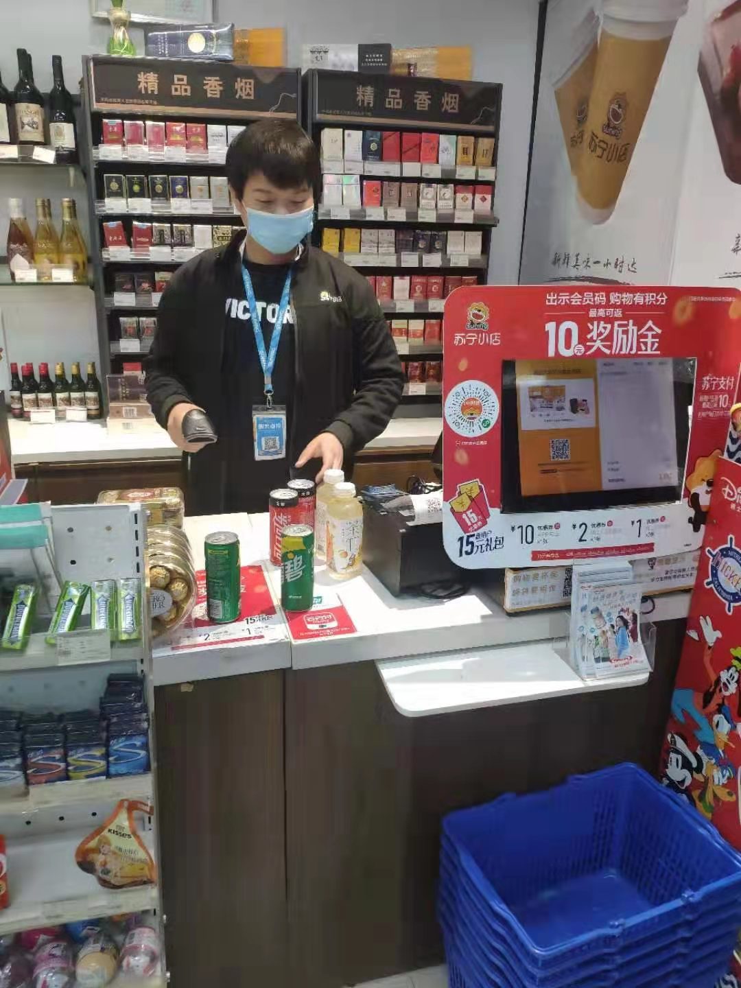 2月13日下午,宅家半個(gè)月的陳翠姣終于重新“上崗”了,不過崗位卻有了微妙的變化。她本是探魚餐廳的一名訓(xùn)練員,今天卻在蘇寧家樂福深圳中心城店進(jìn)行收銀員的上崗培訓(xùn)。