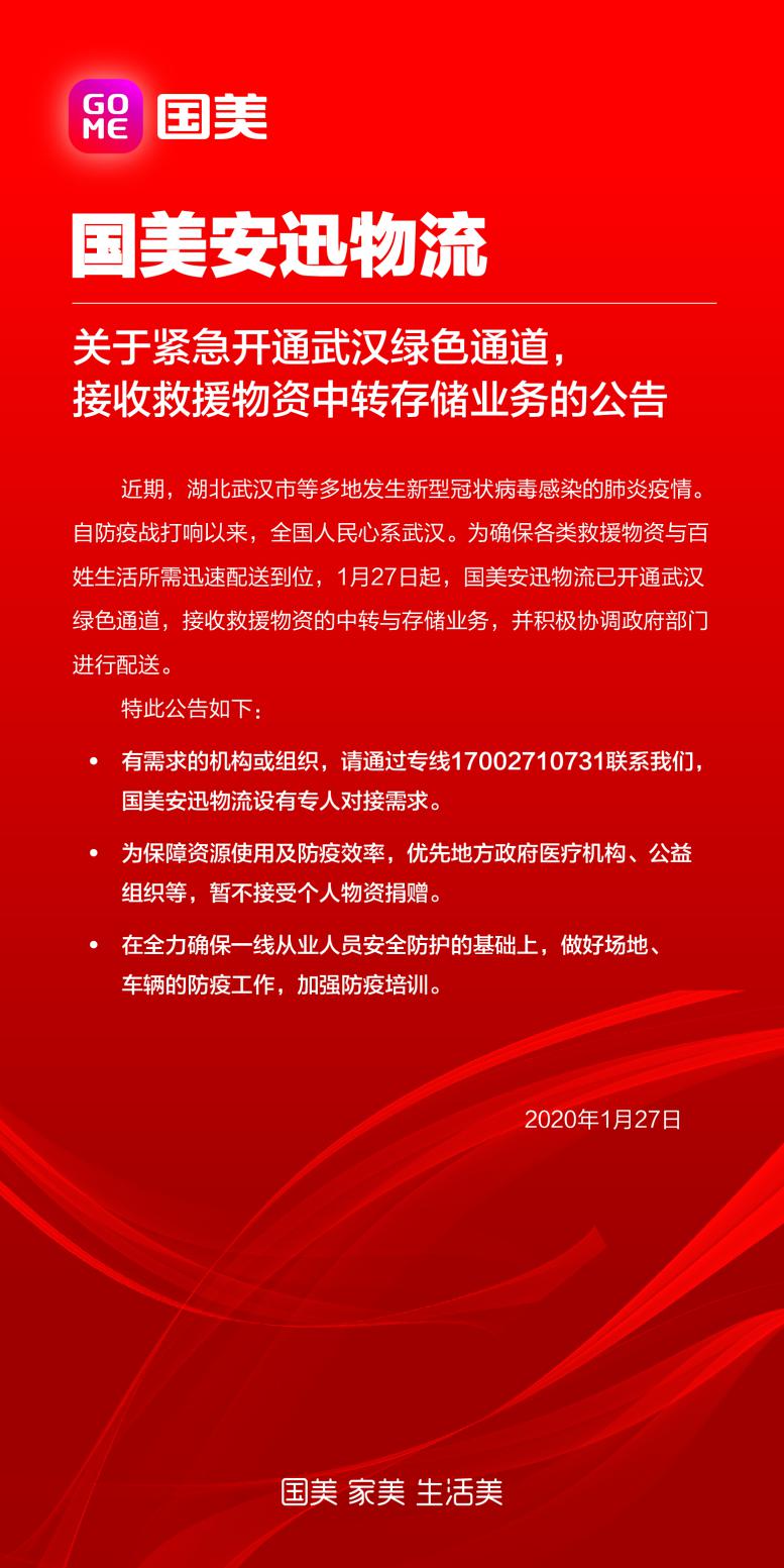 國(guó)美安迅物流宣布,即日起開通武漢綠色通道,接收救援物資中轉(zhuǎn)與存儲(chǔ)業(yè)務(wù),并積極協(xié)調(diào)政府部門進(jìn)行配送,全力保障疫情防控物資運(yùn)輸。