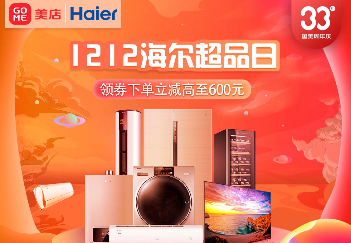 國美33周年慶即將到來,12月12日至12月15日,國美APP、國美美店、全國2400家門店同步啟動“全場好物,第二件5折起”的營銷活動。