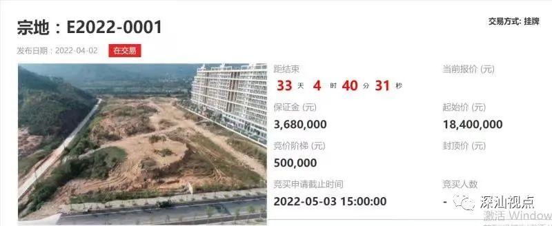 4?日,深圳市规划和自然资源局深汕理局委托深圳交易集团有限公司Q深圛_p源交易中心)(j)Q以挂牌方式公开E2022-0001、E2022-0002两宗地的使用权,公告期自4?日至4?1日,挂牌期自4?2日至5??5时止?/p>