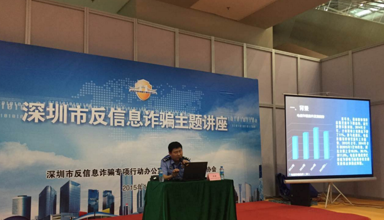 “針對信息詐騙犯罪高發(fā)的態(tài)勢,今年8月1日,我市開展以深圳市政法委書記李華楠同志為領(lǐng)導(dǎo)小組組長的反信息詐騙犯罪專項行動,為期半年。此次專項行動主要集中公安、銀行、通信、工商、網(wǎng)絡(luò)企業(yè)等專業(yè)力量共同打擊信息詐騙犯罪。經(jīng)過合成打擊、宣傳防范、警信警銀合作、對策研究等多個方面的工作,8月1日至10月25日,全市共立信息詐騙案件環(huán)比下降了13.9%;破信息詐騙案件280宗,環(huán)比260宗上升了7.7%;逮捕涉信息詐騙犯罪嫌疑人190人,環(huán)比149人上升了27.5%;打掉涉信息詐騙犯罪團伙19個,環(huán)比19個持平;凍結(jié)涉案賬戶203個,資金3089.9萬元。”深圳市公安局刑偵局大隊長朱海在講座上分享道。