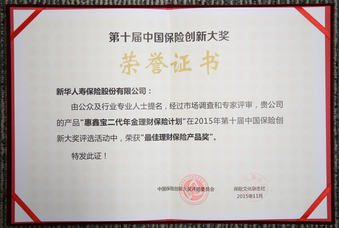 2015年最暢銷保險(xiǎn)產(chǎn)品獎(jiǎng)