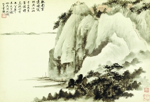 吳湖帆在所藏米芾《多景樓詩帖》冊(cè)首補(bǔ)繪的《北固山江山圖》(局部)