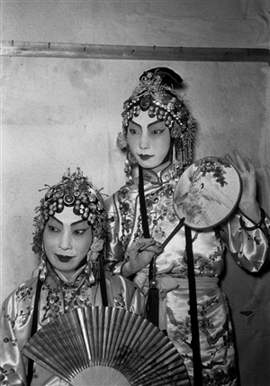他10歲學(xué)藝,13歲正式登臺演出《玉堂春》、《四郎探母》等劇目,彼時的中國正值抗戰(zhàn)的危難時期,風(fēng)雨飄搖,他的父親為彰顯民族氣節(jié),正蓄須明志,暫別舞臺。我們在流傳下來的文獻(xiàn)照片中,只能看見一個面容清秀的少年,安靜地立于他名聲浩蕩的父親的身后,身體微微前傾——除此之外,我們沒法更多地捕捉到這對父子之間情感上的細(xì)節(jié),那黑白的畫面,靜穆而有意地拒絕向后人傳遞出更多的信息。