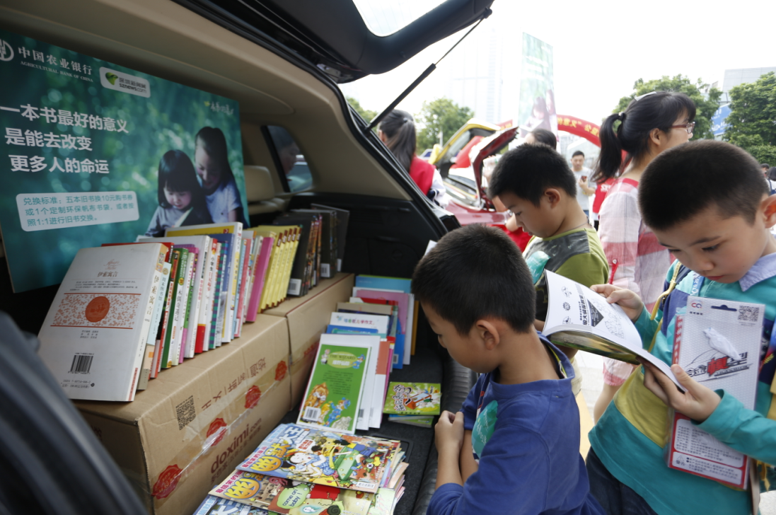 本次活動將車尾箱作為展臺,活動參與者按照1:1進(jìn)行舊書交換,或到深圳農(nóng)行現(xiàn)場設(shè)置的捐書點捐獻(xiàn)舊書,每捐出五本舊書,可獲得由農(nóng)行送出的10元書劵?;顒游齺碜藻\田小學(xué)、深圳實驗學(xué)校中學(xué)部及深圳新聞網(wǎng)網(wǎng)友共40多個家庭參與,僅兩個小時便交出漂亮的“成績單”,現(xiàn)場交換圖書900多本,捐贈愛心書籍1000余本。