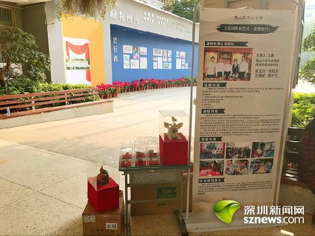 市中小學(xué)傳統(tǒng)文化類“好課程”負(fù)責(zé)人代表南山小學(xué)帶來民間傳統(tǒng)工藝——面塑的設(shè)展示區(qū)。