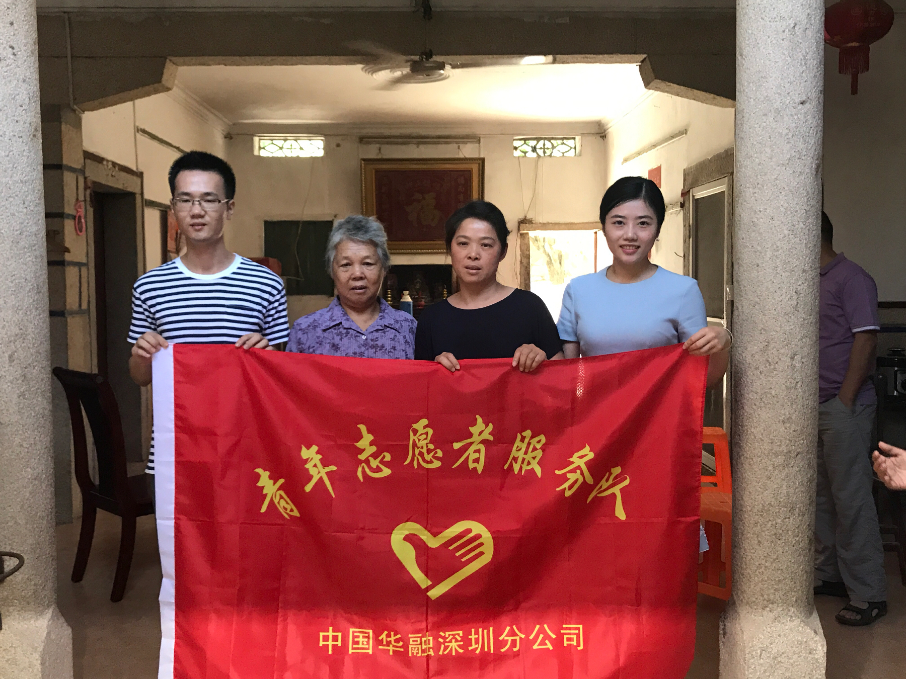 深圳是一座文明之城、正氣之城、大愛(ài)之城,眾多見義勇為英雄無(wú)私奉獻(xiàn)、勇于獻(xiàn)身的英雄精神捍衛(wèi)了鵬城的正義和義氣。據(jù)深圳市見義勇為基金會(huì)理事長(zhǎng)朱景輝介紹,在深圳,為弘揚(yáng)社會(huì)正氣,做出見義勇為行動(dòng)的市民人數(shù)多達(dá)兩千多人。為褒獎(jiǎng)他們的行為并給予關(guān)注問(wèn)候,每年春節(jié)、清明節(jié)、中秋節(jié),基金會(huì)都會(huì)向這些見義勇為的英雄表示慰問(wèn)并發(fā)放慰問(wèn)金。中國(guó)華融深圳分公司青年志愿者服務(wù)隊(duì)在得知三位英雄的事跡后,立即投入?yún)⑴c到此次赴閩慰問(wèn)英雄家屬的行動(dòng)當(dāng)中。