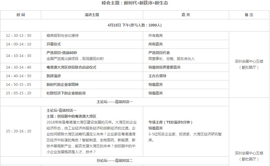 2018總裁創(chuàng)新峰會以“新時代、新秩序、新生態(tài)”為主題,秉承“全球智慧、共享發(fā)展”理念,以全球化視野的戰(zhàn)略性眼光,順勢大眾創(chuàng)業(yè)、萬眾創(chuàng)新和粵港澳大灣區(qū)的戰(zhàn)略機(jī)遇,積極推動建設(shè)新時代企業(yè)命運(yùn)共同體,通過“主旨演講+高端對話+資本對接會”,圍繞科技、產(chǎn)業(yè)、金融,關(guān)注創(chuàng)新創(chuàng)業(yè)與創(chuàng)投,邀請政界領(lǐng)袖、中外知名企業(yè)總裁,500強(qiáng)企業(yè)商學(xué)院院長、知名投資家、智庫專家、商會協(xié)會代表、財(cái)經(jīng)媒體等,共同探討新經(jīng)濟(jì)背景下中國企業(yè)可持續(xù)發(fā)展的機(jī)遇與挑戰(zhàn)。