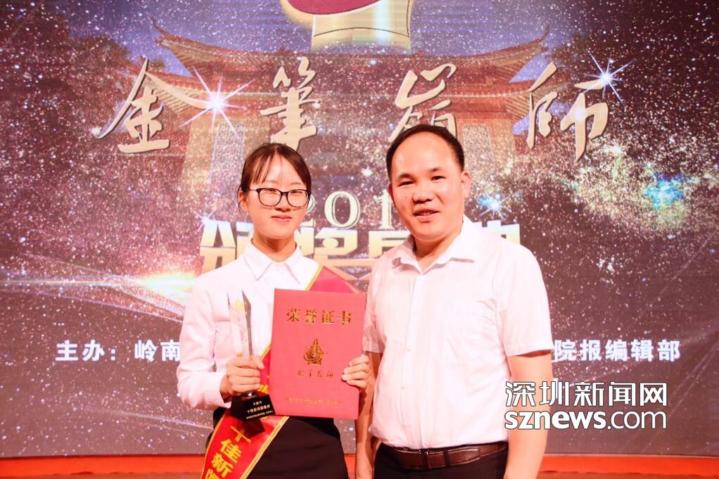 林老師受邀參加"金筆嶺師"的頒獎盛典,為深圳二外2016屆學(xué)生王啟丹頒獎