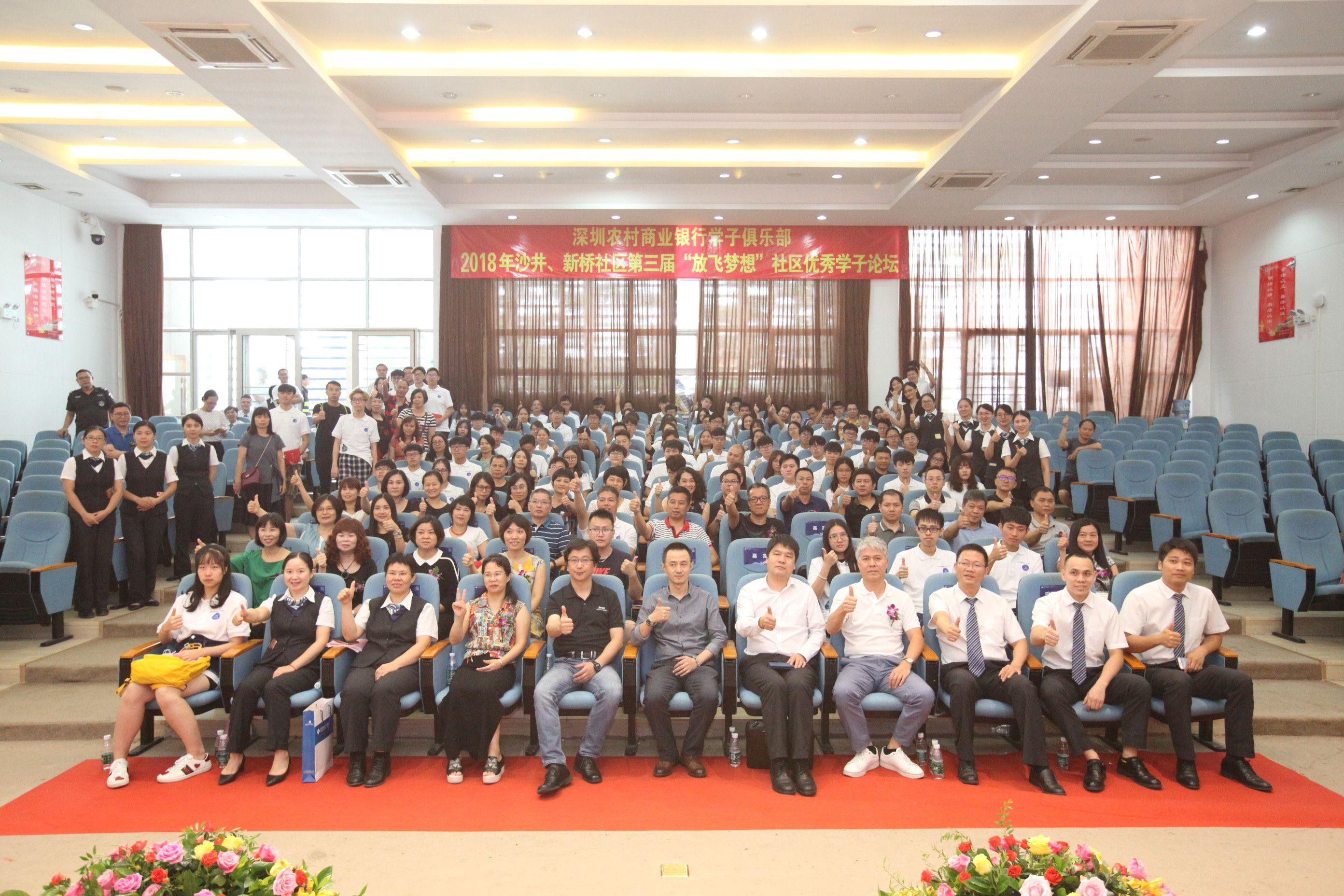 深圳農(nóng)商行相關(guān)領(lǐng)導(dǎo)、沙井街道黨工委委員、組織人事部部長(zhǎng)辛文明、新橋街道辦事處副主任江日坤,寶安教育局第4學(xué)區(qū)教育管理辦公室主任曾偉崇,沙井中學(xué)副校長(zhǎng)劉建梅,新橋商會(huì)會(huì)長(zhǎng)曾劍琨,沙井商會(huì)執(zhí)行會(huì)長(zhǎng)陳允權(quán),沙井、新橋街道27個(gè)社區(qū)股份公司董事長(zhǎng)及代表、99位被高等院校錄取的本屆高考學(xué)子以及部分學(xué)生家長(zhǎng),70名沙井中學(xué)新高三學(xué)生,共計(jì)約300人出席了本次活動(dòng)論壇。