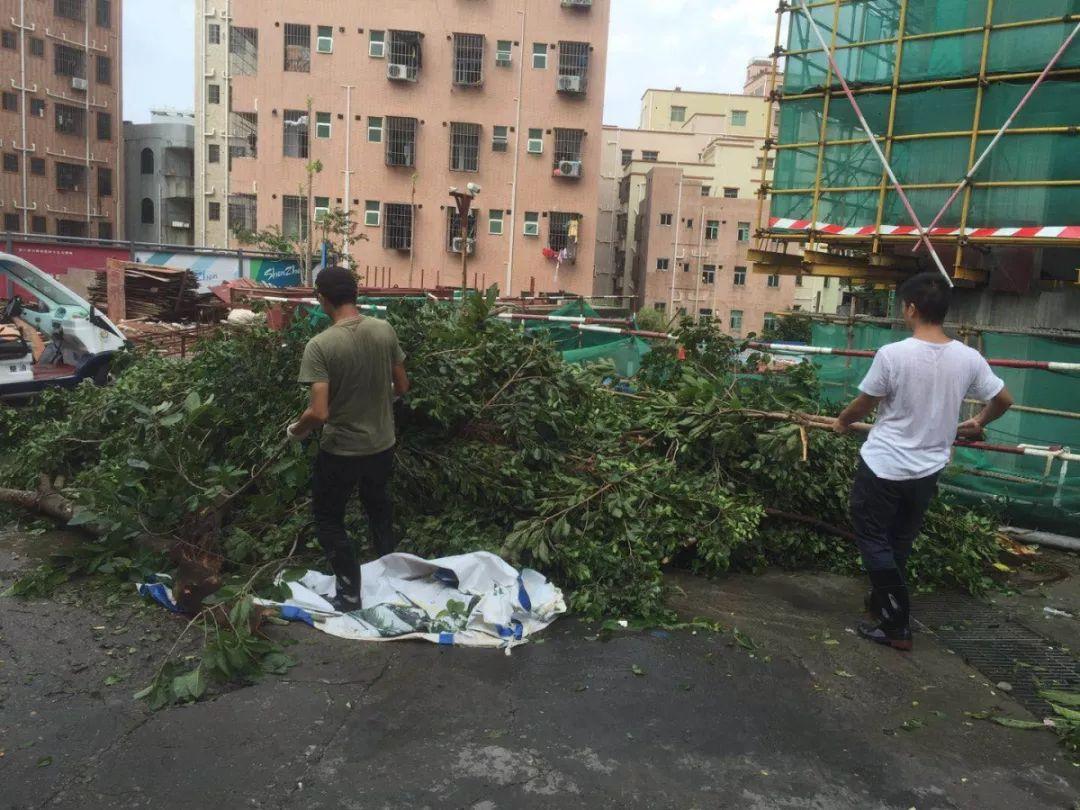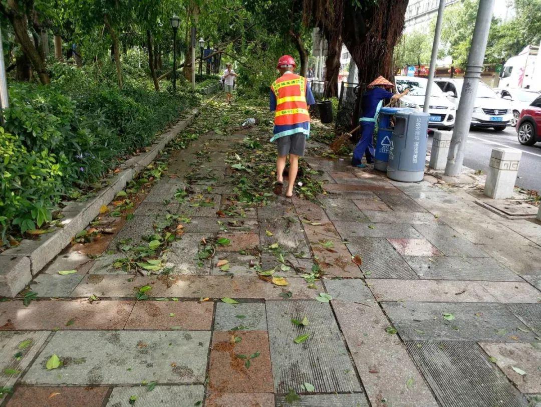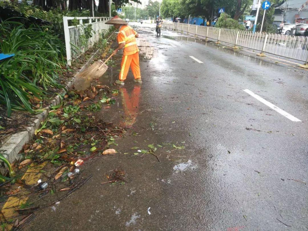 據(jù)統(tǒng)計,截至17日下午6時,福永街道共出動搶險人員770人,出動車輛45臺,清除路面障礙130余處,疏通道路邊溝橋涵70余處,修復交通設施45處,連夜貫通、清洗主干道路33條,扶正樹木283棵,清理枝葉約215.5噸、垃圾約198.5噸,修復垃圾桶630個、果皮箱330組,修復路燈15桿。