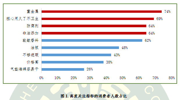 對于氣墊粉底這類兼具BB/CC霜和粉底功效的新型彩妝產(chǎn)品,消費者最擔(dān)心的問題是什么呢?項目調(diào)查數(shù)據(jù)顯示,關(guān)注氣墊粉底“重金屬”問題的消費者占比高達(dá)74%,“擔(dān)心氣墊粉底用久了不衛(wèi)生”的消費者占比為69%,還有64%的消費者關(guān)注“防腐劑”和“非法添加劑”問題。
