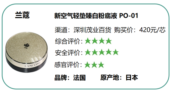(一)本次比較試驗從消費者角度出發(fā),參考國標(biāo)、歐盟(包含德國)、美國以及日本等國家和地區(qū)的標(biāo)準(zhǔn)對氣墊粉底進(jìn)行測評,旨在為消費者篩選出達(dá)到國際一流標(biāo)準(zhǔn)的高品質(zhì)產(chǎn)品。