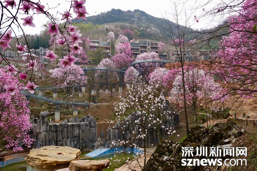 雨霧濛濛之中觀賞盛開的辛夷花,宛若置身仙境......李仁奇 攝