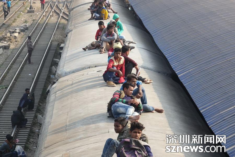 從達卡到邁門辛的火車是國內(nèi)最擁擠的線路之一,通常有數(shù)千名旅客擠在載客人數(shù)只有650人的火車里,有的抓著把手,有的蹲在門口,要不就蹲在車箱間的聯(lián)軸上或坐在車頂上。李仁奇攝