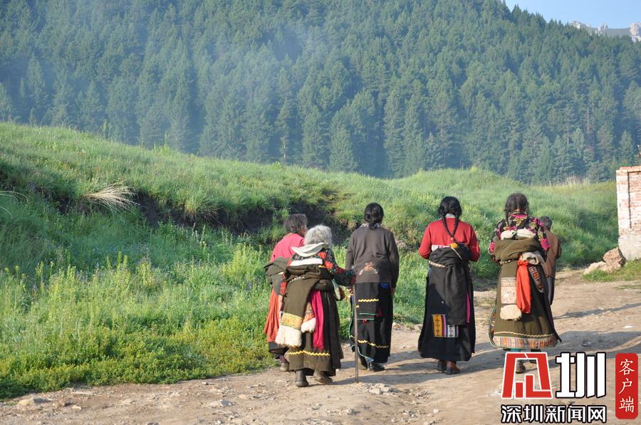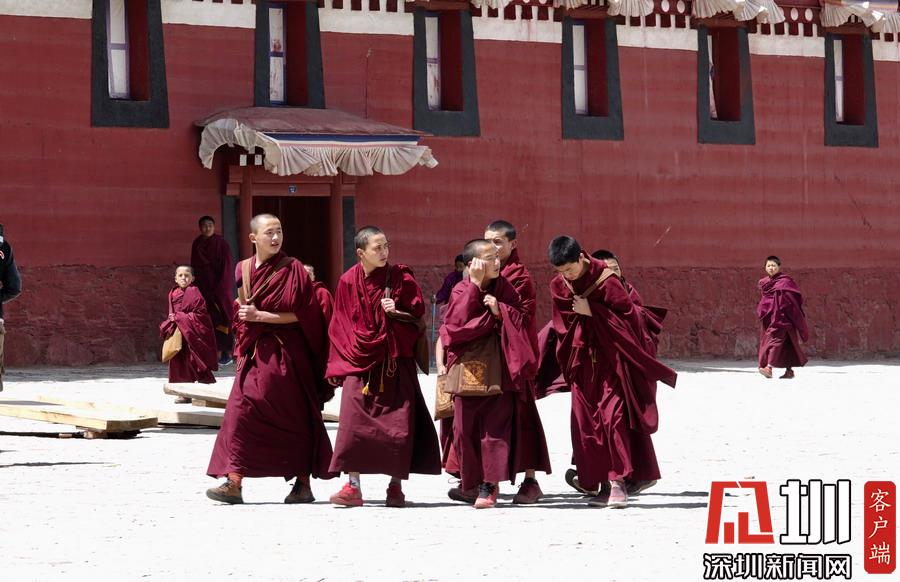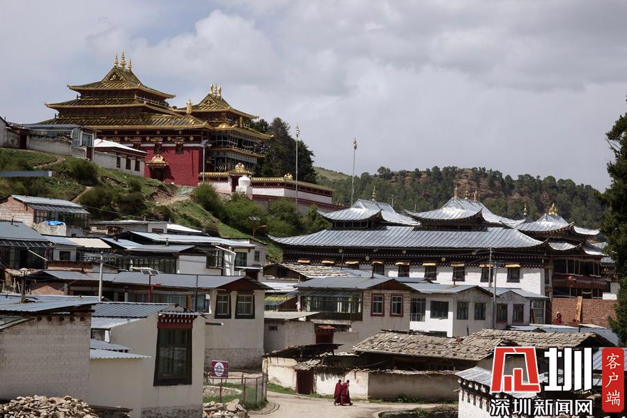 鎮(zhèn)內(nèi)的主要街道分屬兩省管轄。南北兩端,幾百米之內(nèi),有兩座壯觀(guān)宏大的寺院建筑群隔“江”(白龍江源流)相望,甘肅境內(nèi)是“賽赤寺”。四川境內(nèi)有“格爾底寺”。李仁奇攝