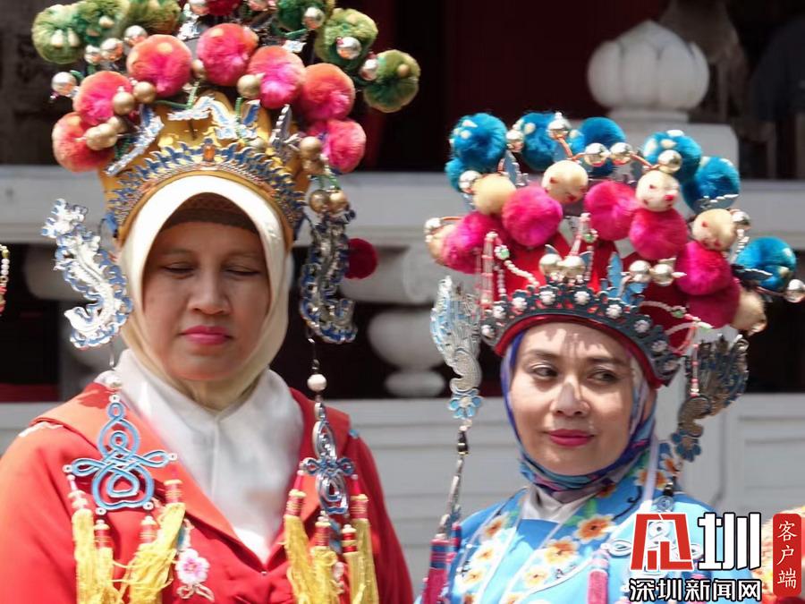 租用中國戲劇服裝留影的當(dāng)?shù)啬滤沽謰D女。李仁奇攝