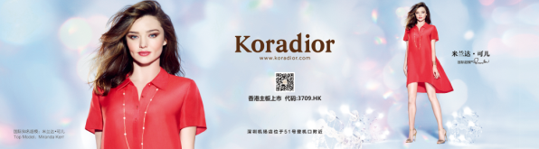 Koradior邀請國際超模米蘭達·可兒成為其形象代言人。春夏形象大片登陸深圳機場;