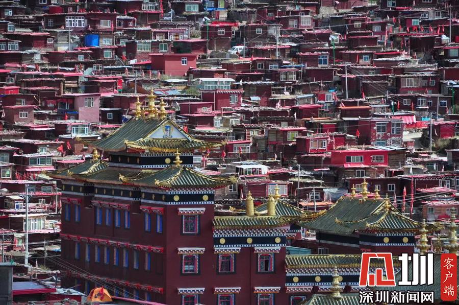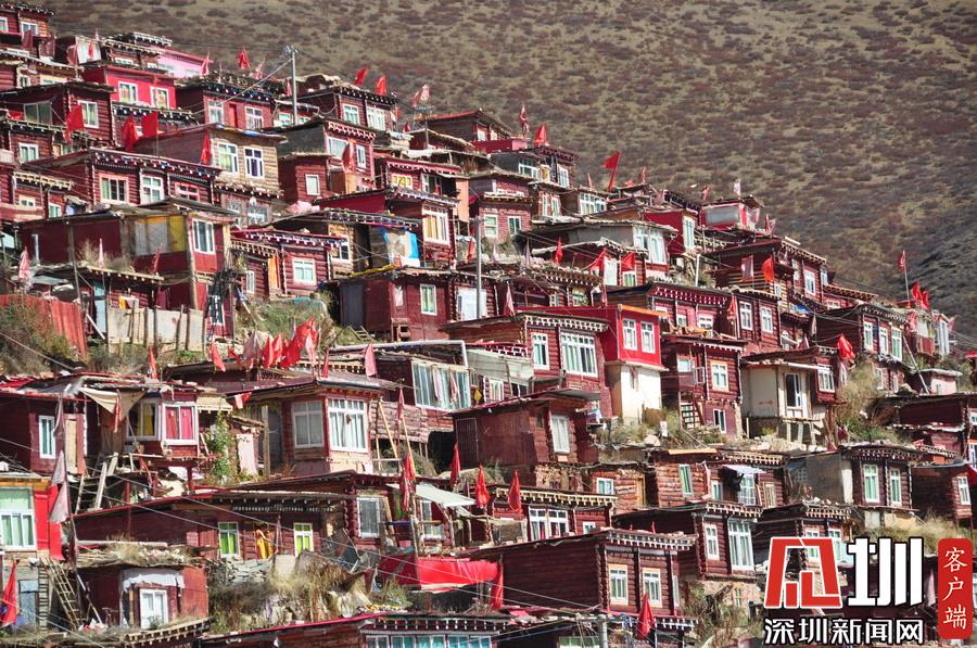 色達五明佛學院距四川省甘孜州色達縣城20余公里,在一條海拔4000米左右、名叫喇榮溝的山溝里。李仁奇攝