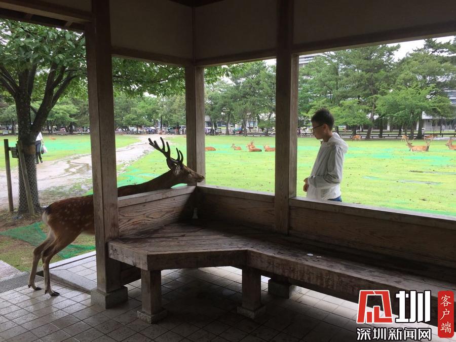 最為有名的是春日大社的鹿群,它們被看成是神的使者而受到人們的悉心照顧。李仁奇攝