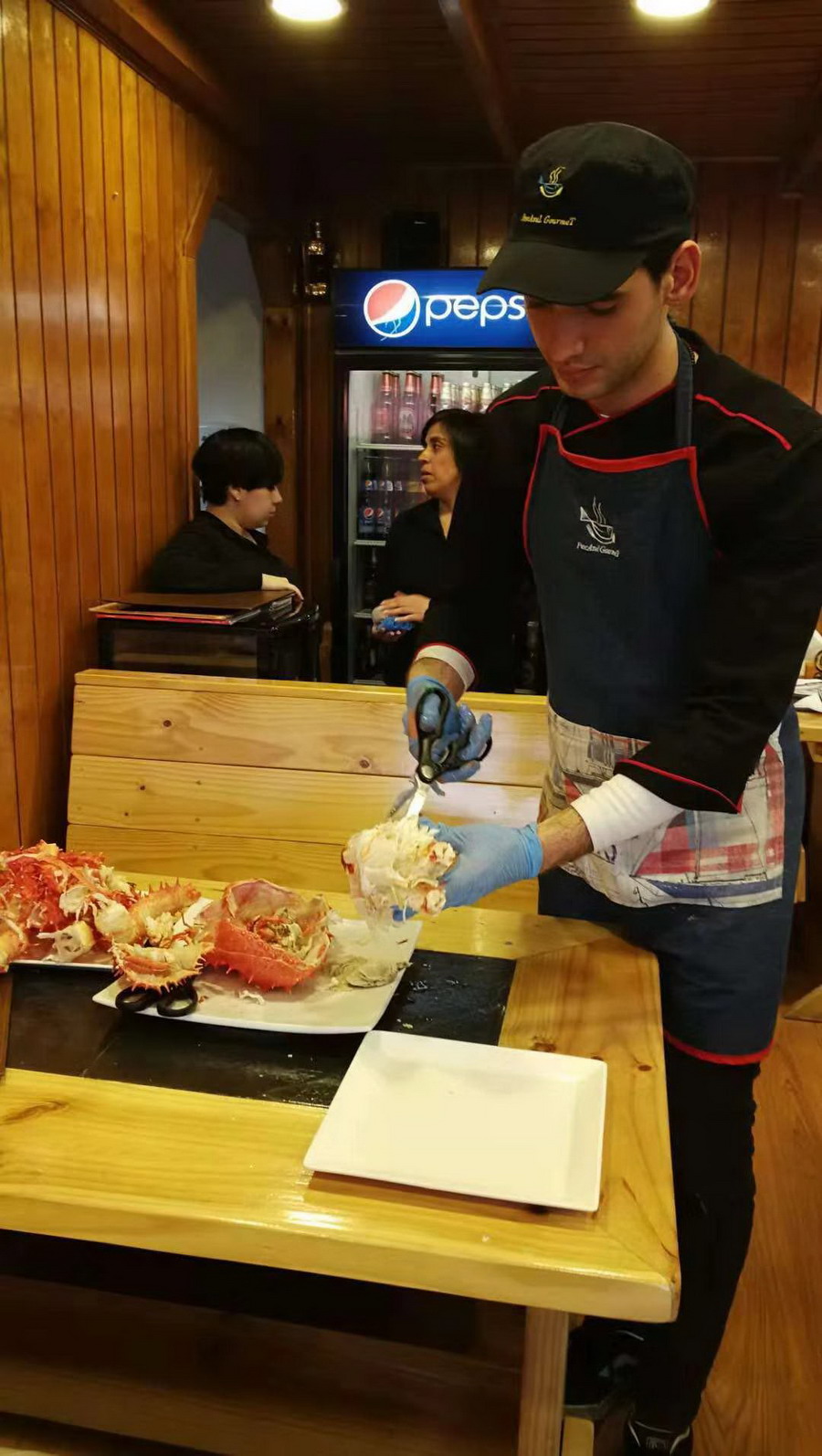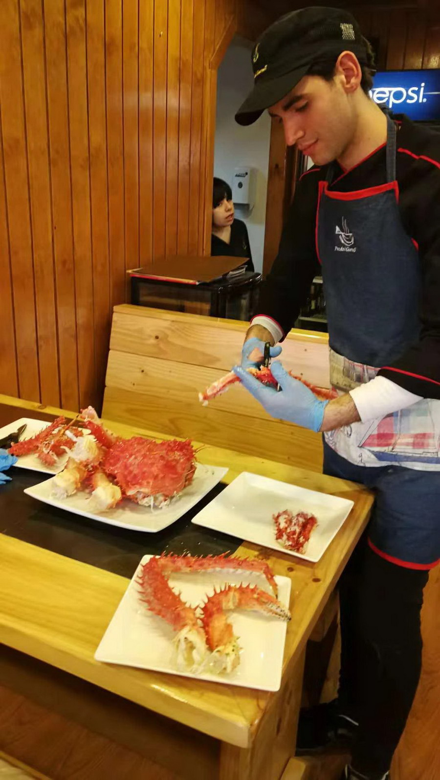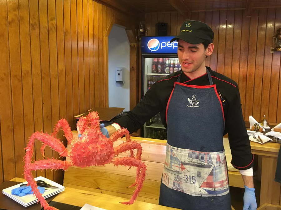 網(wǎng)友經(jīng)當(dāng)?shù)芈眯猩绲耐扑]到一家蜘蛛蟹貿(mào)易公司參觀并在其附設(shè)的餐廳品嘗了海鮮大餐。李仁奇攝