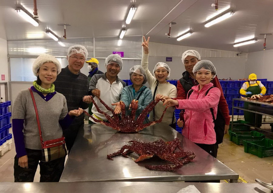網(wǎng)友在蜘蛛蟹加工基地。湯有國攝