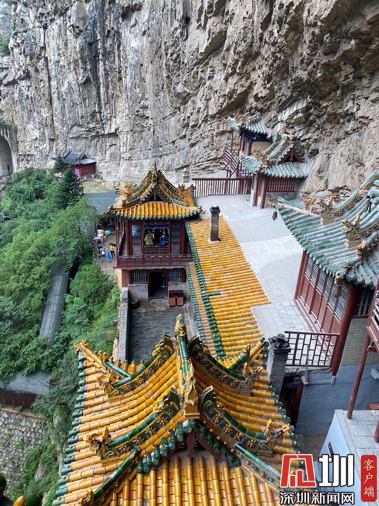 懸空寺呈現(xiàn)''一院兩樓''的布局,總長(zhǎng)三十二米,包括了樓閣殿宇四十間。李仁奇攝。