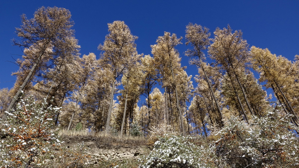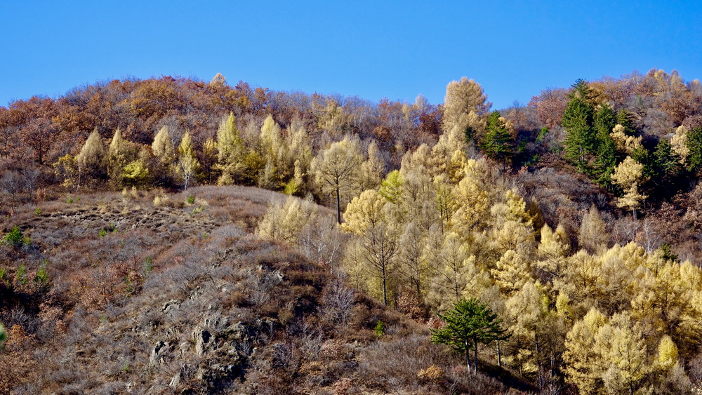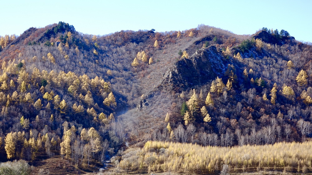 到了10月中旬,這里的草原大多已經(jīng)泛黃,樹(shù)葉也大多枯萎,但收獲季節(jié)的一片金黃仍不失為一道美景。李仁奇攝。