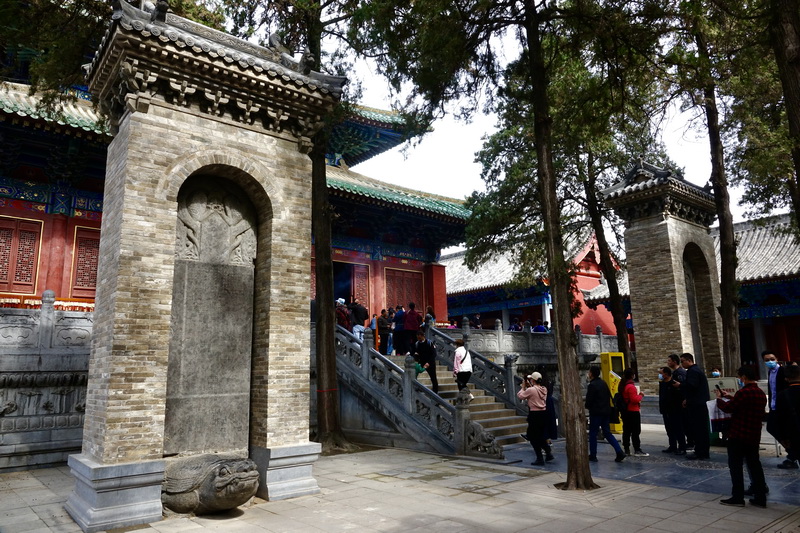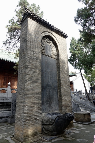 少林寺內(nèi)保存唐以來碑碣石刻甚多,重要的如《唐太宗賜少林教碑》《武則天詩書碑》《戒壇銘》和近年建立的《日本大和尚宗道臣紀(jì)念碑》等。李仁奇攝。