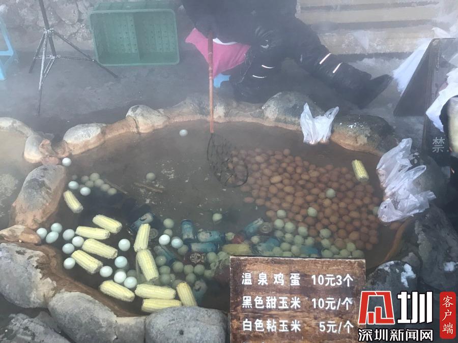 周圍一片銀裝素裹,冰天雪地,而這里熱氣騰騰,煙霧裊裊,實在是別有一番景致。