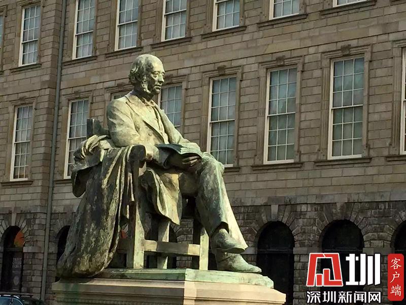 這里出生并成就了許多著名的文學(xué)家,如葉芝、王爾德、蕭伯納等。圖為著名作家、詩人王爾德塑像。李仁奇 攝