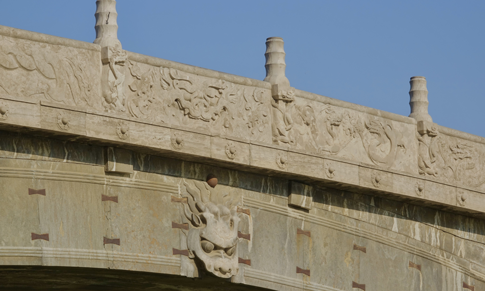 此次修繕在全面測(cè)量的基礎(chǔ)上采用原來的護(hù)拱石、鉤石、腰鐵、鐵拉桿和收分五種做法,還在橋面上下加設(shè)了二粘三油防水層(二層防水亞麻布和三層瀝青),防止漏水腐蝕現(xiàn)象發(fā)生。橋面的所有欄板、望術(shù)按早期式樣新制。李仁奇 攝