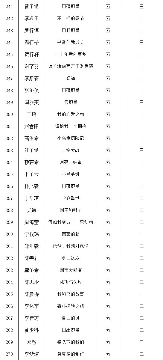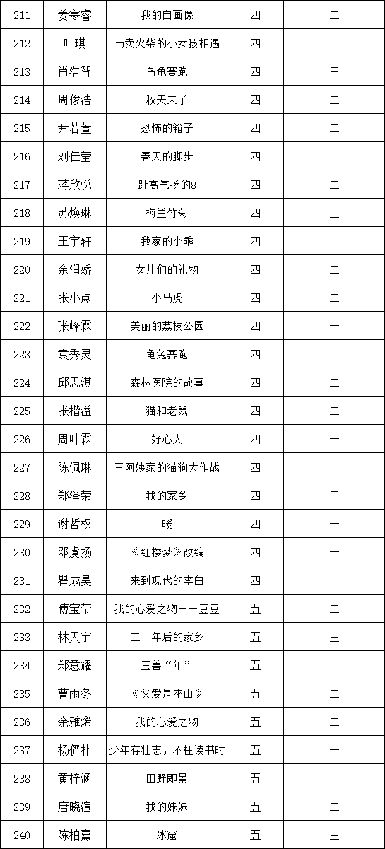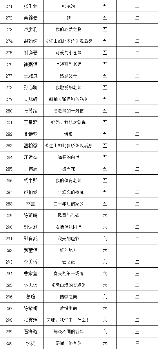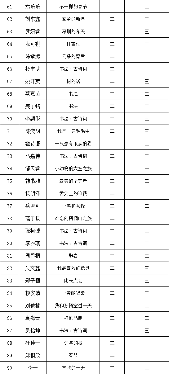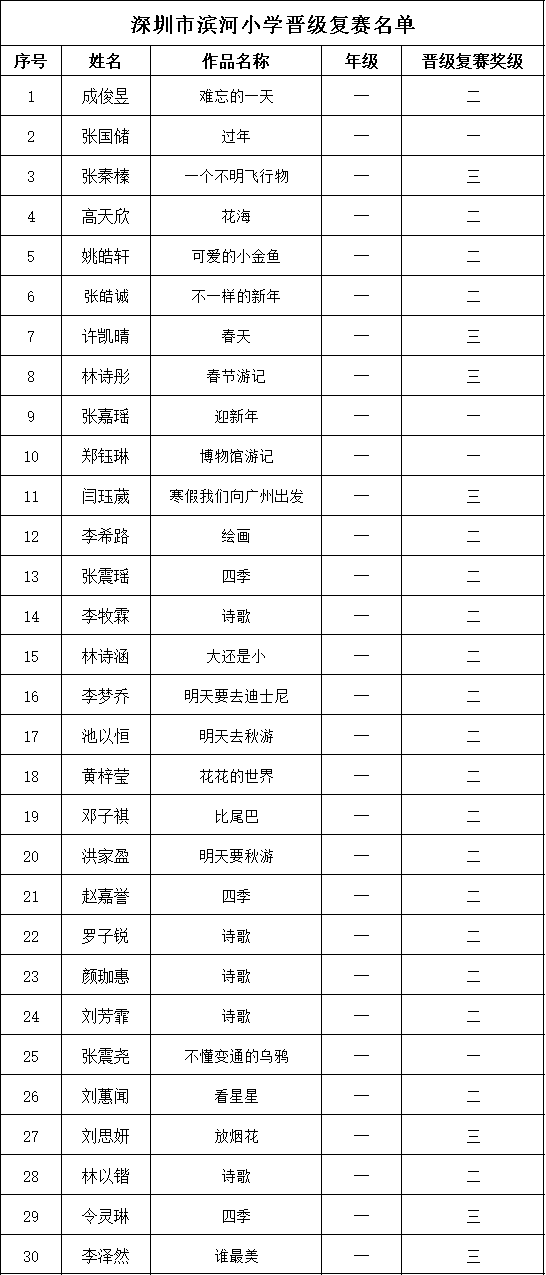 自2021年1月,活動征稿啟動以來,獲得了深圳市廣大中小學(xué)生、教師、文學(xué)愛好者的熱烈響應(yīng)積極參與,吸引了深圳百余所學(xué)校的上萬人關(guān)注報名?,F(xiàn)公布深圳市濱河小學(xué)校園專場晉級復(fù)賽名單如下: