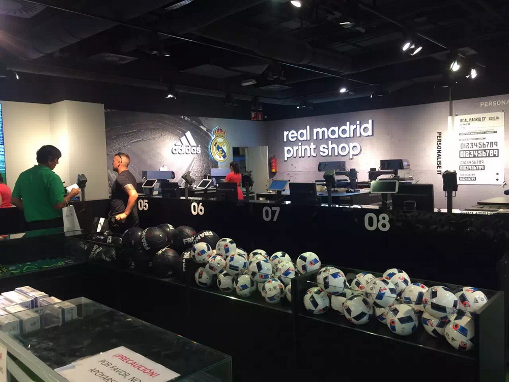阿迪達(dá)斯公司與皇馬俱樂部合辦的紀(jì)念品商店生意興隆。李仁奇 攝