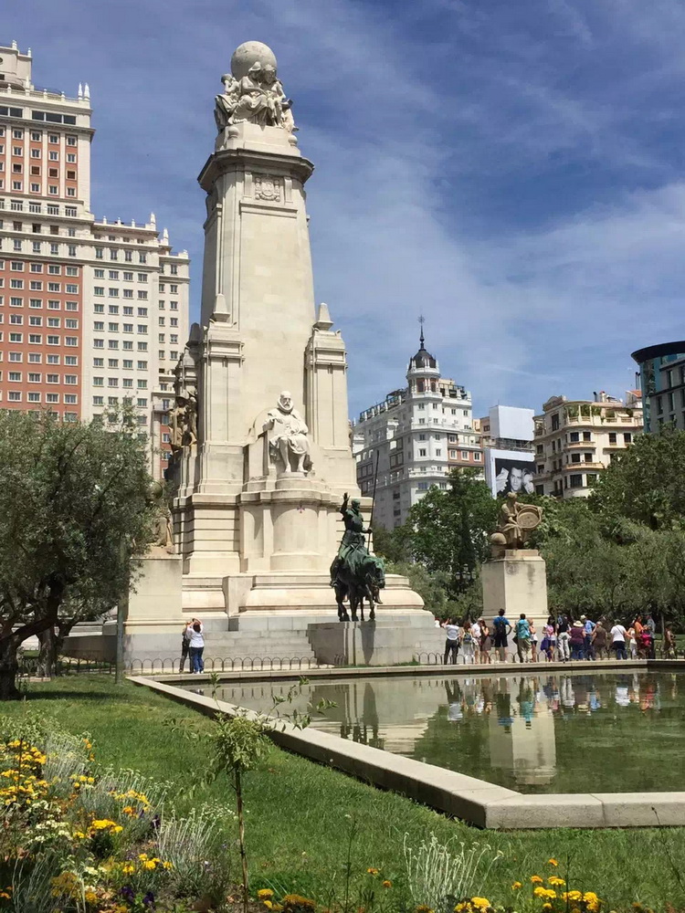 馬德里是一個藝術(shù)之都,文藝復(fù)興時期西班牙最偉大的作家塞萬提斯及其小說人物堂吉柯德和仆人桑丘的塑像位于市區(qū)中心,是世界各國游客的打卡之地。李仁奇 攝