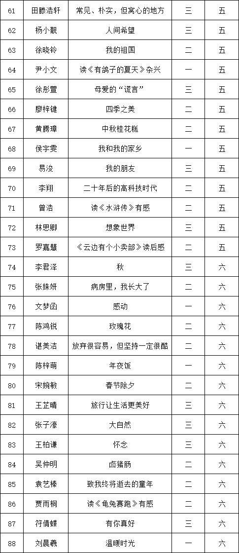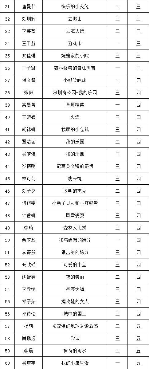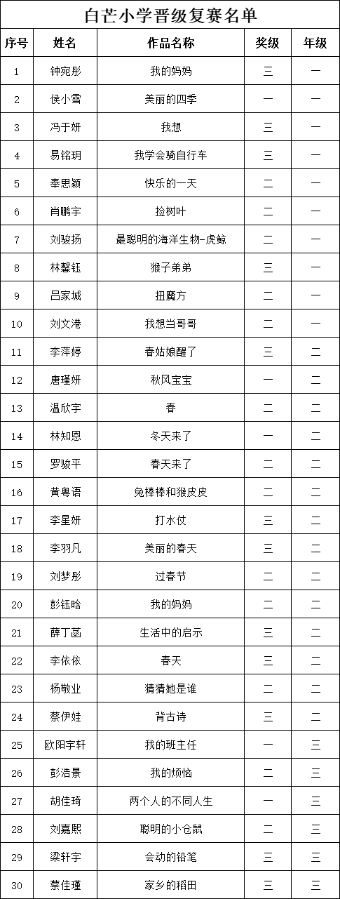 自2021年1月,活動(dòng)征稿啟動(dòng)以來,獲得了深圳市廣大中小學(xué)生、教師、文學(xué)愛好者的熱烈響應(yīng)積極參與,吸引了深圳百余所學(xué)校的上萬人關(guān)注報(bào)名。現(xiàn)公布深圳市南山實(shí)驗(yàn)教育集團(tuán)白芒小學(xué)專場(chǎng)晉級(jí)復(fù)賽名單如下: